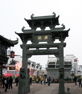 The street starts in the west at Zhenhai Bridge, a stone arch bridge built during the Ming Dynasty, and ends in the east at the "Memorial Archway." Its total length is about 1.5km and the sides of the street are laid with slab stones.