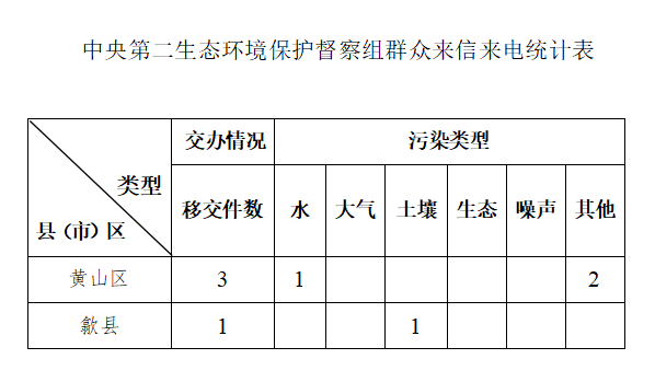 中央第二生態(tài)環(huán)境保護(hù)督察組向安徽省轉(zhuǎn)辦第20批信訪件(涉黃山市4件)